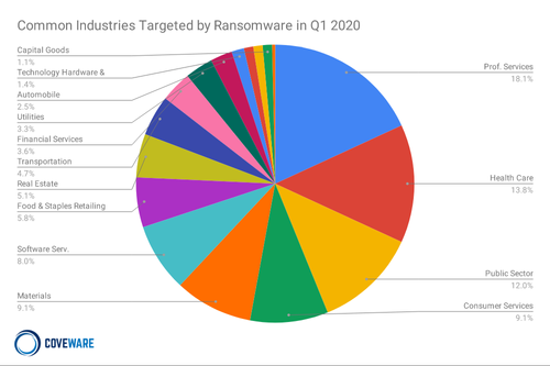 In 2020, the healthcare industry remains in the cross-hairs for ransomware attacks, with almost 14% of ransomware attacks targeting the industry in Q1.